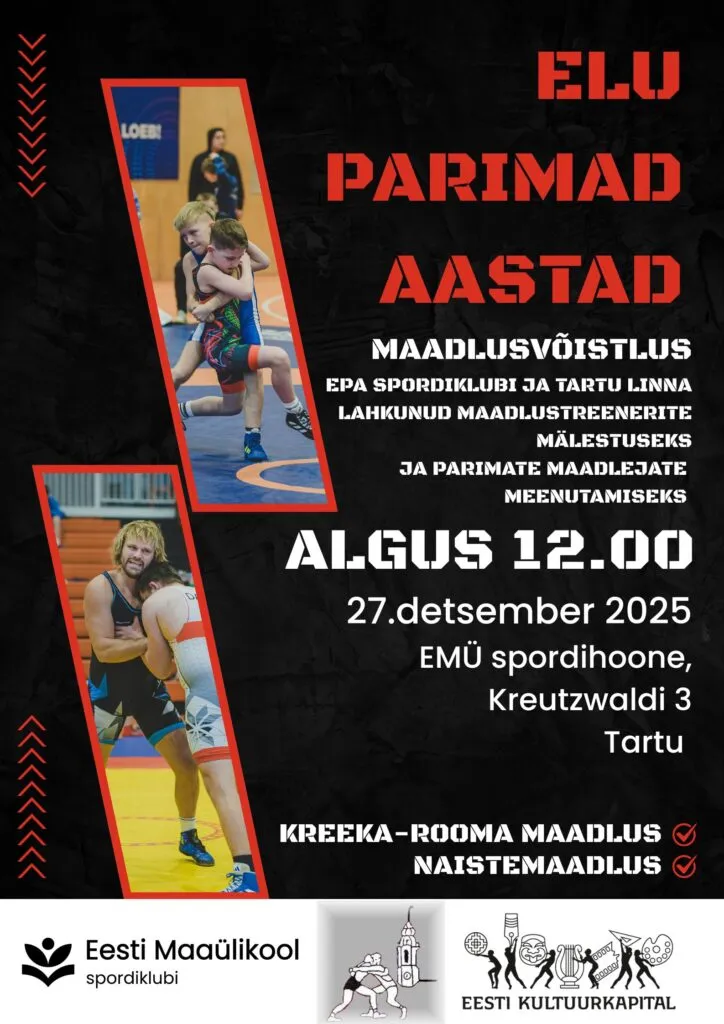 „Elu Parimad Aastad“ 2025 17.11.2025 27.12.2025„Elu Parimad Aastad“ 2025 Maaülikooli Spordihoone, Tartu Vaata asukohta Kreeka-rooma maadlus NaistemaadlusEPA_juhend_2025