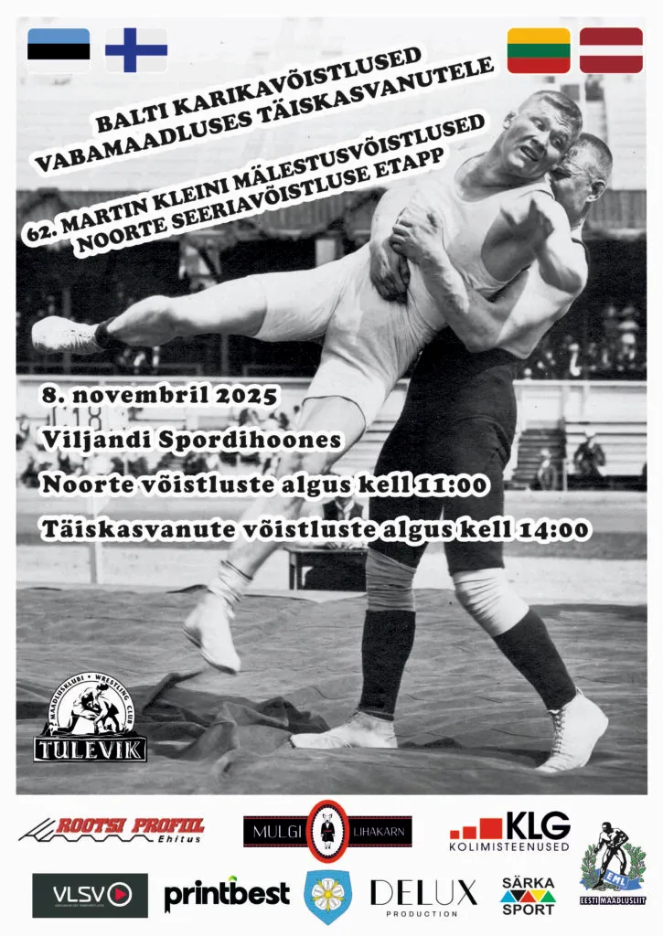 M. Kleini Mäv ja Balti KV 2025 03.10.2025 08.11.2025M. Kleini Mäv ja Balti KV 2025 Viljandi Vaata asukohta Naistemaadlus Vabamaadlus2025-M.Klein-eesti2025-M.Klein-ENGBalti-Karikas-2025Balti-Karikas-2025-ENG